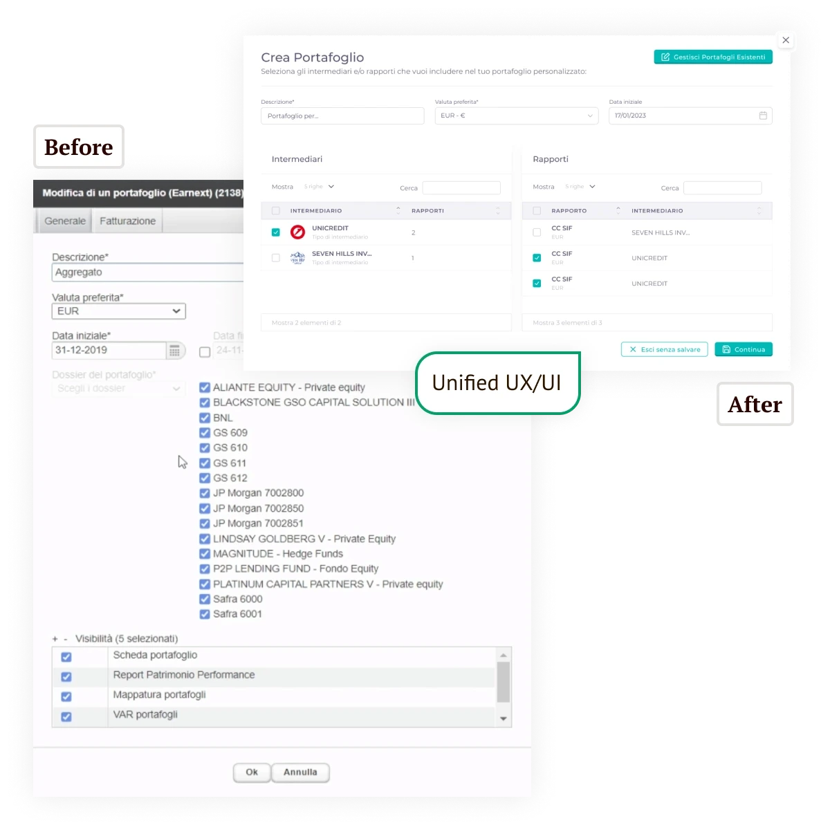 Unified the admin and client-facing platform into a single, consistent experience.